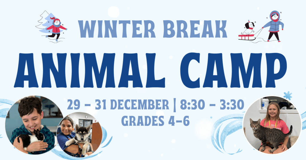 Join us for a fun-filled Animal Camp experience! Winter Break Animal Camp is an enriching and fun animal experience, designed to inspire the next generation of animal lovers. Campers in grades 4 – 6 are invited to spend part of their winter break meeting adoptable pets, making crafts and playing games, and learning all about the world of animal shelters. This cozy camp includes writing New Year’s Resolutions for our shelter animals, making vision boards for 2026, and delicious cookie decorating.