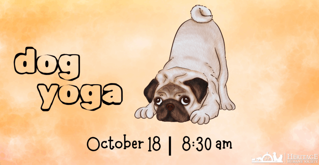 Join us in The Heritage Humane Society’s classroom on Saturday, October 18 at 8:30 a.m. for an hour-long beginner-friendly gentle yoga practice. It will be a donation-based yoga class to benefit the homeless pets at the shelter. This is a gentle yoga class accessible to yogis of all levels and beginner-friendly, modifications will be offered to meet the needs of all personal practices. Join us with your yoga mat and be ready to breathe, move, have fun, and meet some adorable, adoptable DOGS!