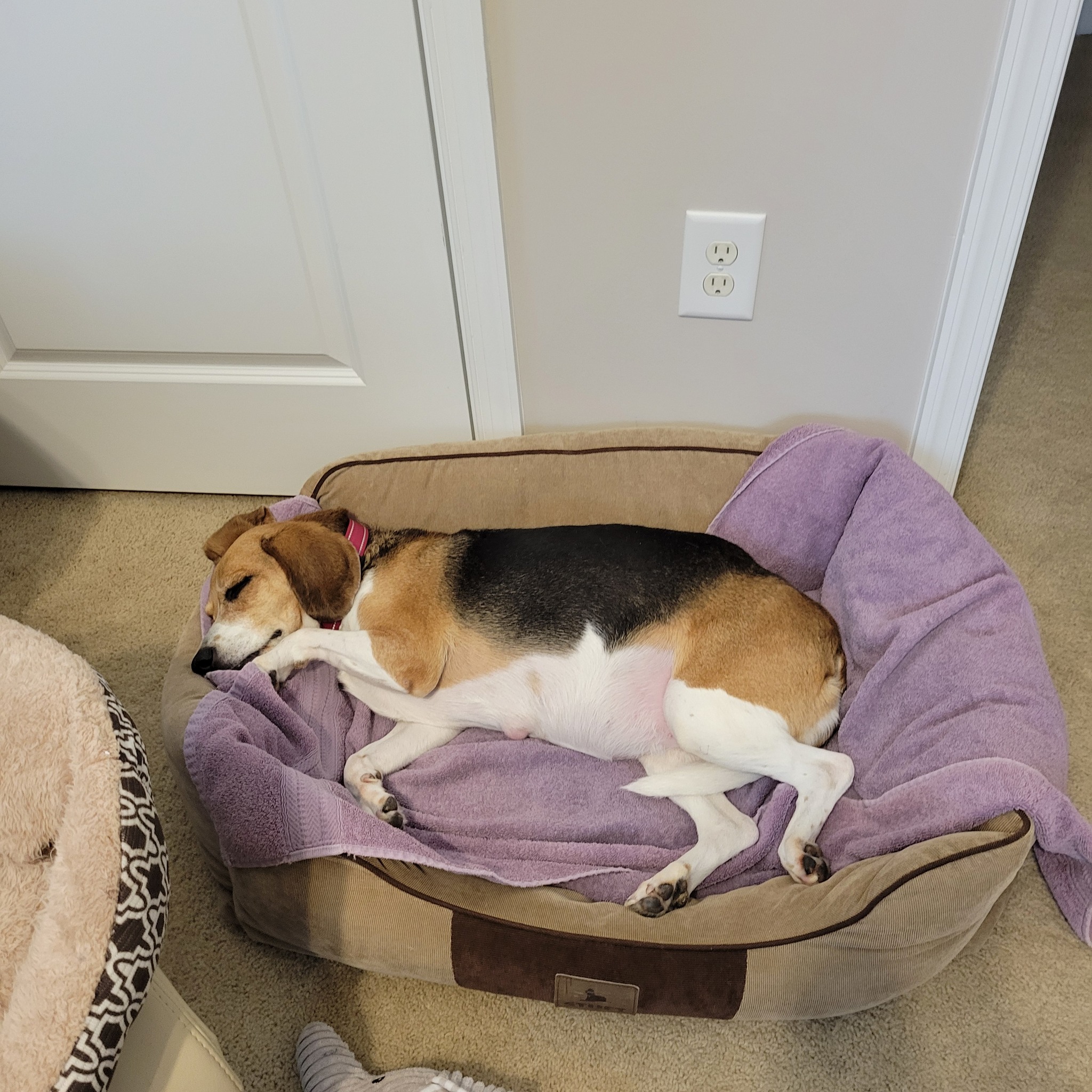 Angel Baby was surrendered to us in November after her mom passed away and her dad was unable to care for her any longer. Unfortunately, Angel Baby is nervous and overwhelmed in the shelter, and she shouldn’t have to spend her retirement in a kennel. Before entering our care, she did not go outside for potty breaks, walks, or yard time, and her story has really touched all of us at HHS.
