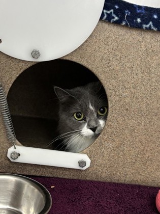 Cloudy is technically a part of our career cat program, but she could also be considered as a potential in-home pet as well. She loves to be scratched with a back scratcher, which tells us that once she opens up, she could be a loving companion. That said, if you have a job that needs doing outside to keep the pests away, Cloudy is your girl!