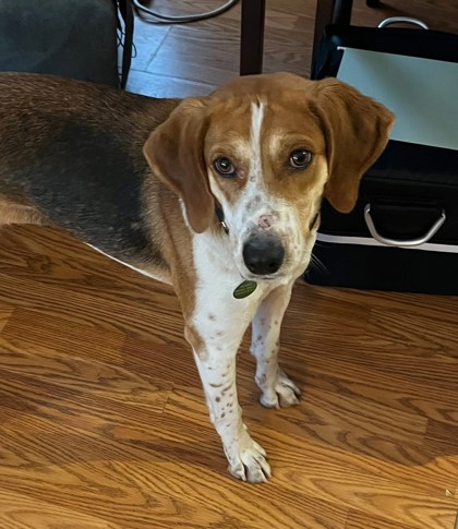 With a touch of hound in her, Eve is curious and loves sniffing out every little scent on her adventures. She’s treat-motivated and enjoys playing with stuffed toys, making her the perfect combination of smart, playful, and affectionate.