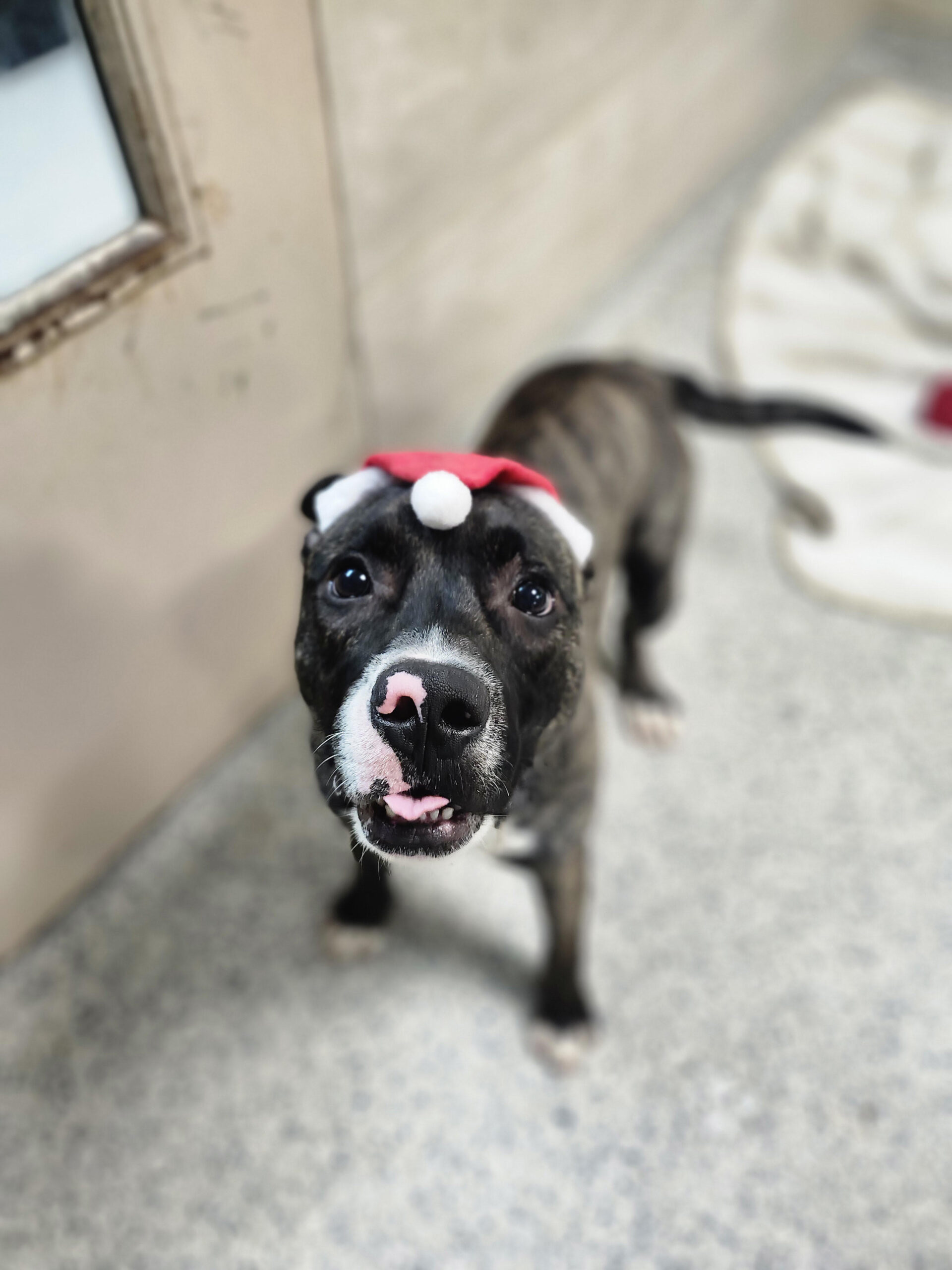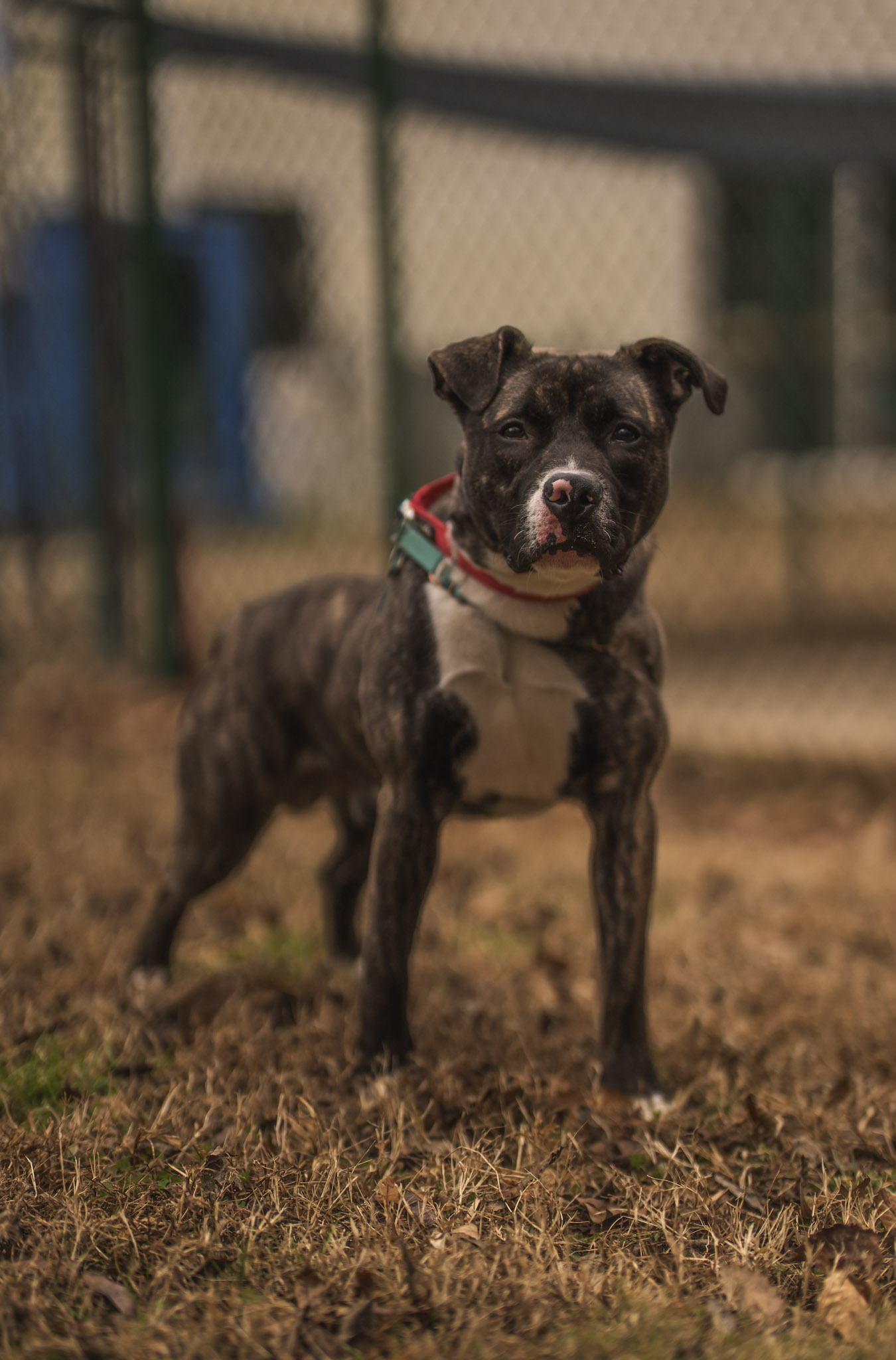 Bryan is an adorable brindle pittie who delights everyone he meets. He was found as a stray in late October, and has been in our care since. Bryan is dog social, only a year old, and SO INCREDIBABLY CUTE- he even chatters his teeth when excited. Bryan knows sit and down, has an incredibly impressive vertical, and is super treat-motivated, making him the perfect active companion to someone who loves teaching their dog new moves.