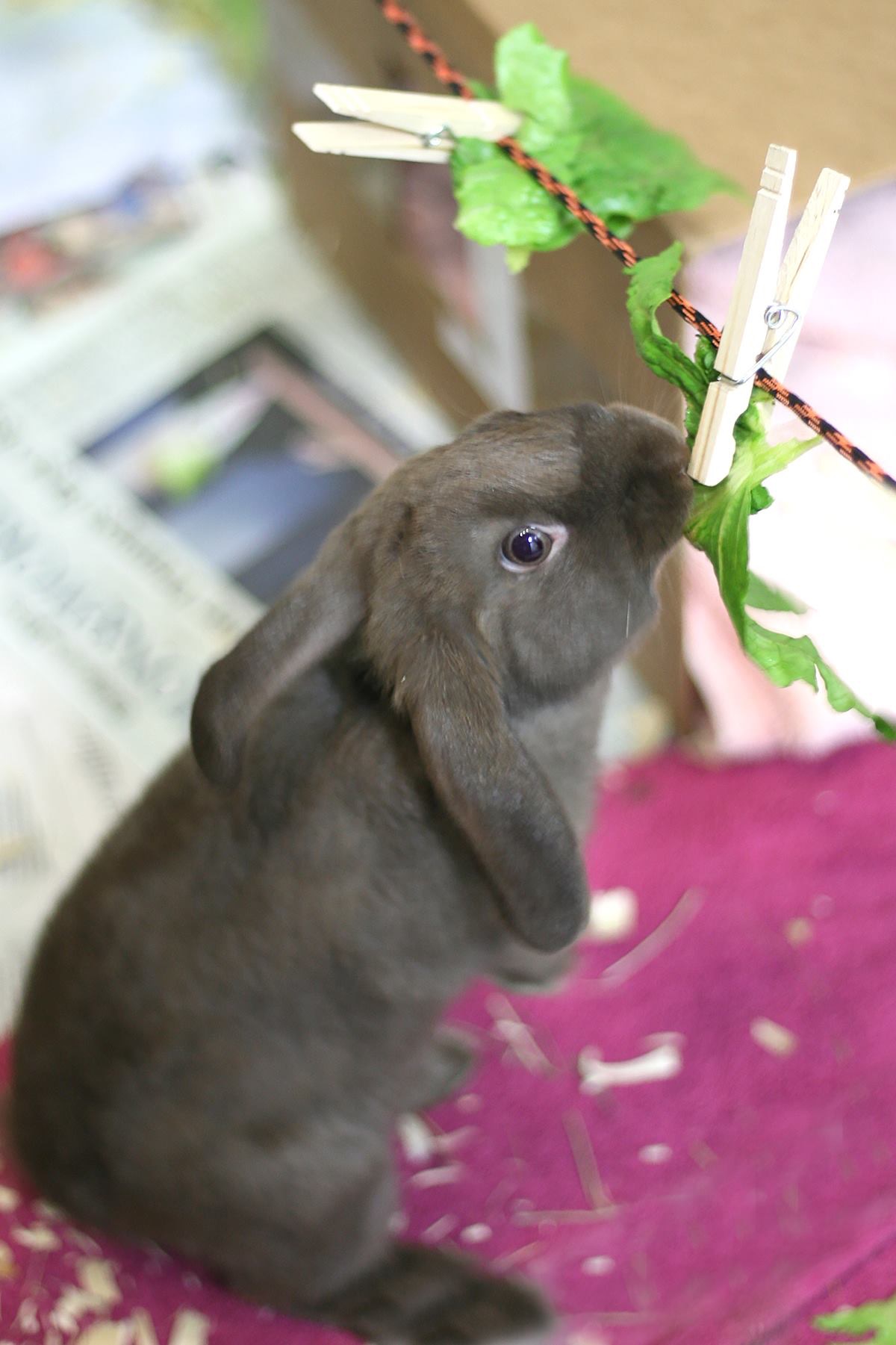 Because bunnies can be litter box trained (yes, just like a house cat) some people even allow bunnies to romp freely around their house (under supervision). It’s always important to keep an eye on your bun because bunnies are born to chew! And they will chew on anything that is their height; this means baseboards, electrical cords, and furniture legs.