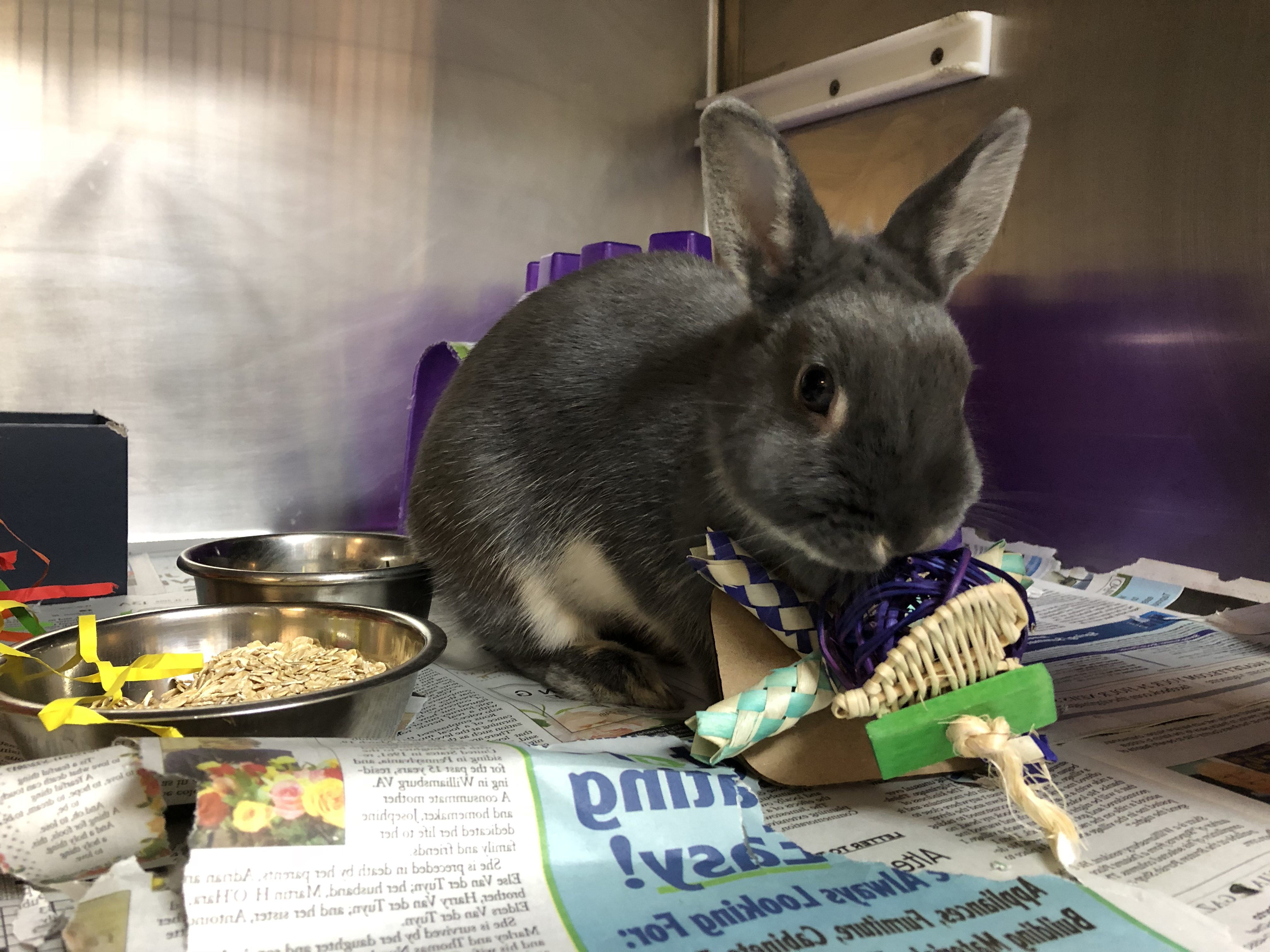 What many people don’t know is that – while these pets don’t take up much space, they are still a lot of work, and need human interaction, attention and veterinary care, just like a dog or cat. Every once in a while we’ll have families want to adopt a bunny as a “starter pet” for their kids to learn responsibility. While bunnies do teach responsibility, they require A LOT more attention and daily maintenance than what some people may think. Did you know bunnies can live up to 12 years?